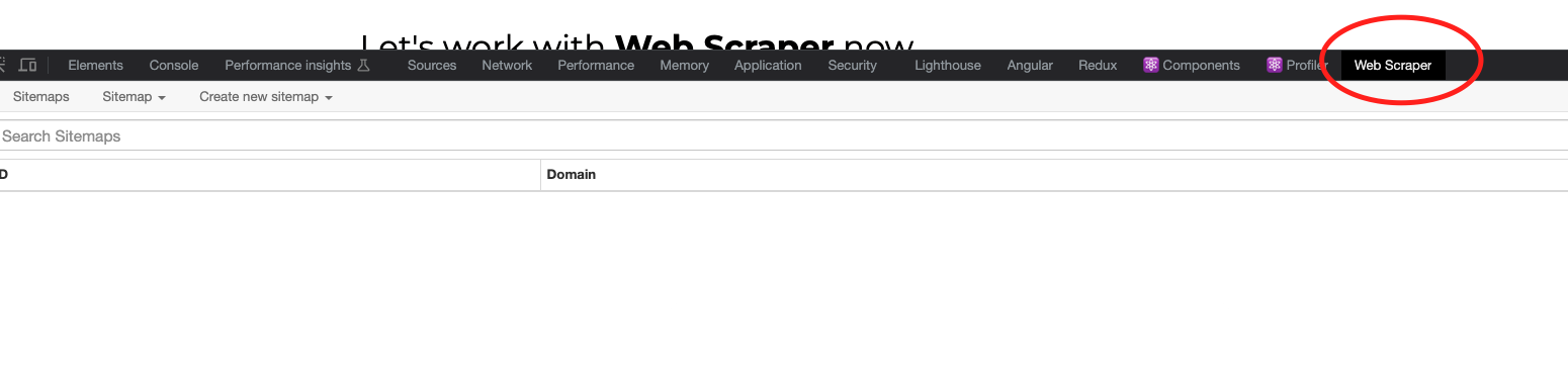 Once it is installed in your chrome browser, right click on any web page and click on inspect. Where you will see a new tab with name Web Scraper .